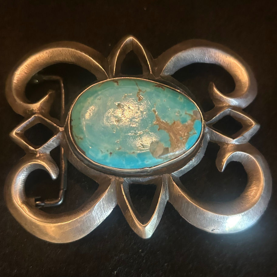 Chimney Butte Sterling Silver & Turquoise Scrollwork Belt Buckle – One-of-a-Kind