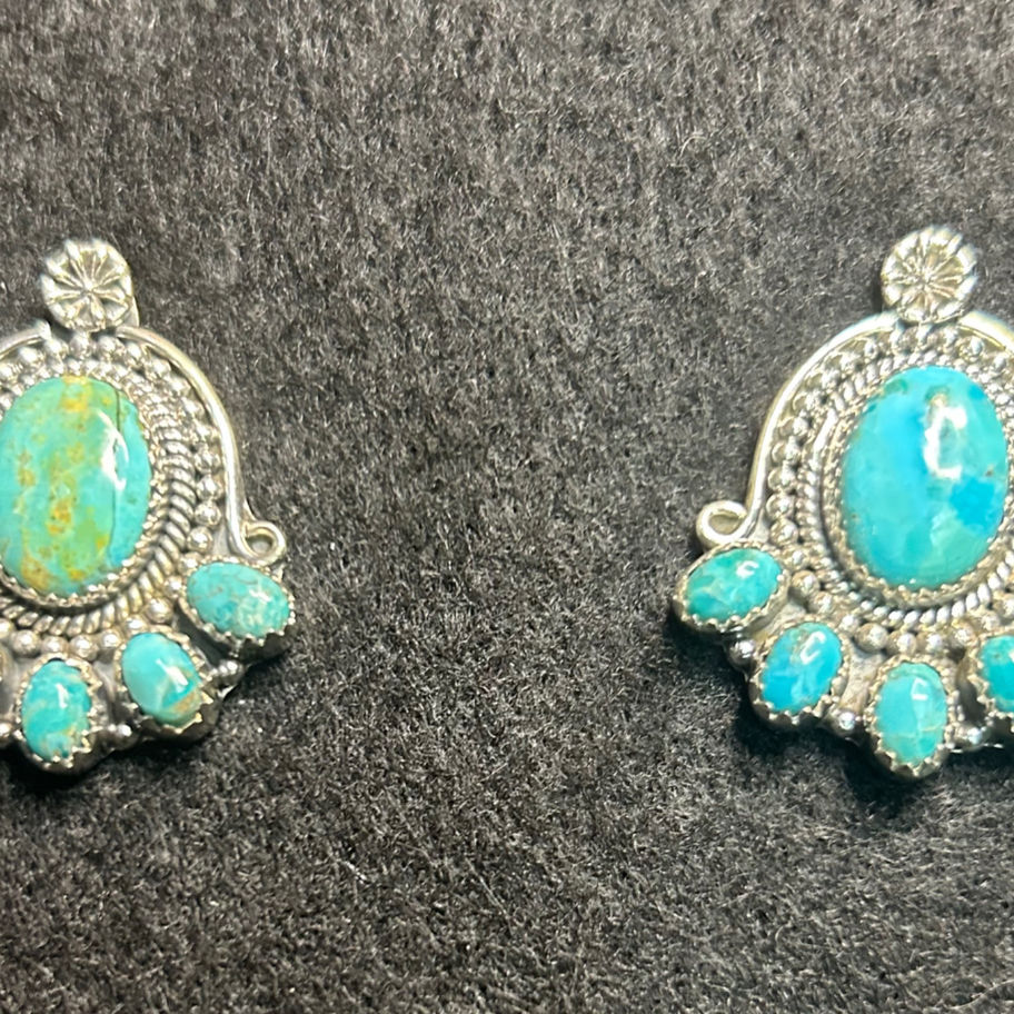 Handcrafted Five-Drop Arch Turquoise Earrings – Sterling Silver Western Jewelry